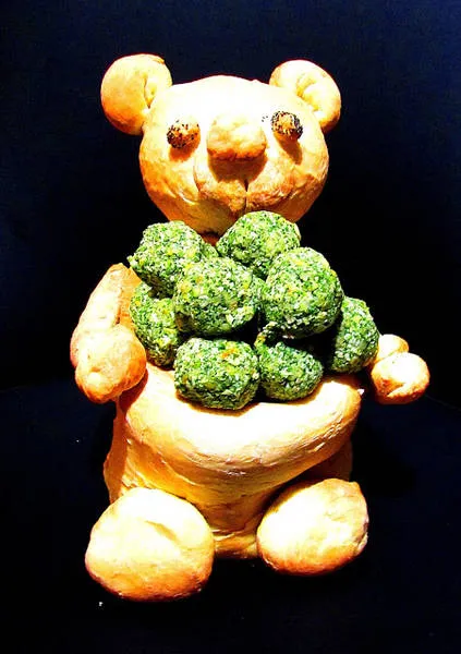 Приготвено с много желание за деца за да хапнат нешо зелено. Много е сладък мечо, бих си го хапнала аз, заедно с топчетата.