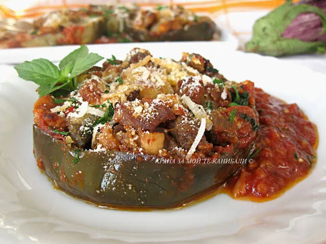 Сочни патладжани с месо и сос. ако нямате телешко - ползвайте свинско.