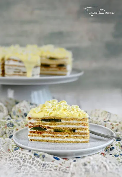 Медена торта със сладко от зелени смокини и глазура от бял шоколад