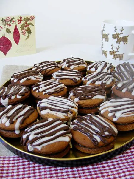 Слепват се по две меденки с мармалад и се украсяват с шоколадова и белтъчна глазура.