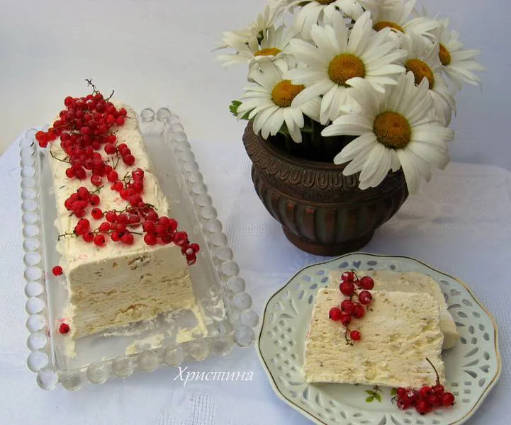 Домашно приготвено ледено изкушение - сметана, мед, бадеми, за украса - френско грозде