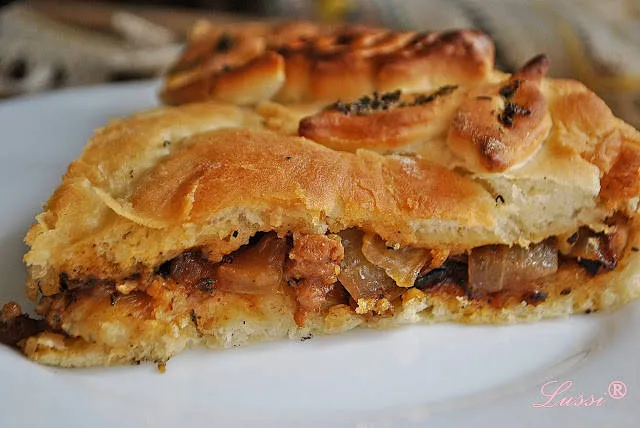 Меко домашно хлебче, с плънка от запържено крехко свинско месо и лук