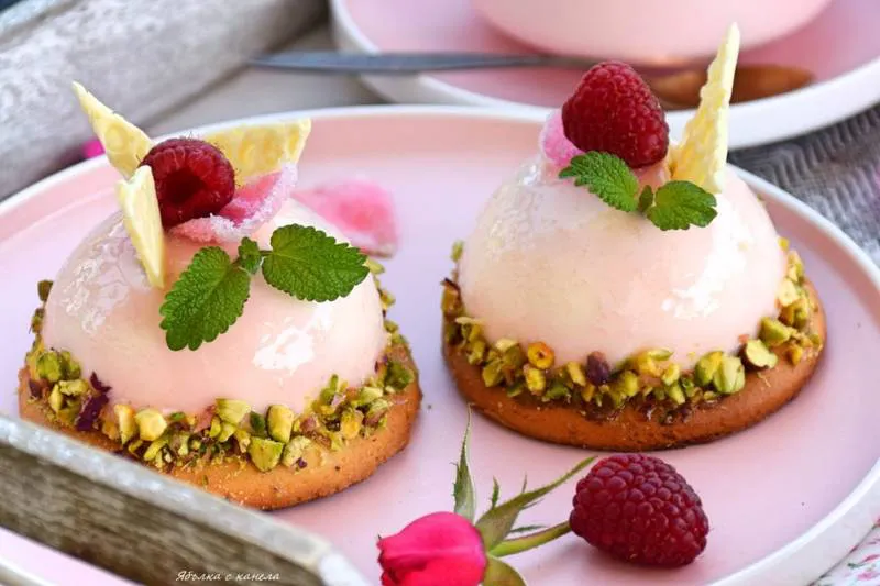 Нежни, ароматни и фини мус тортички със свеж вкус на малини и дъхави рози.