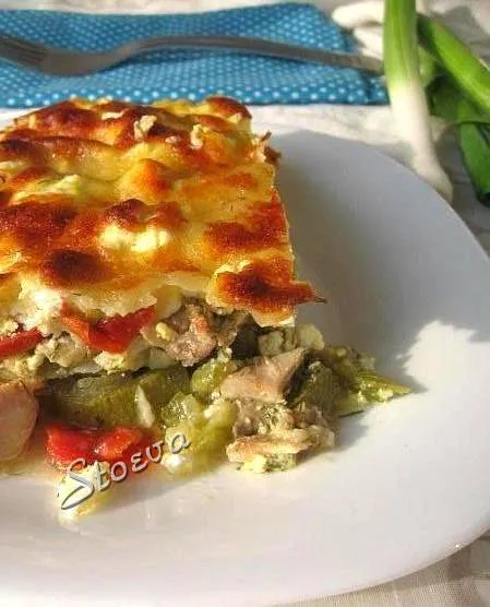 Питка от нахут, гарнирана с тиквички, домати и сирене