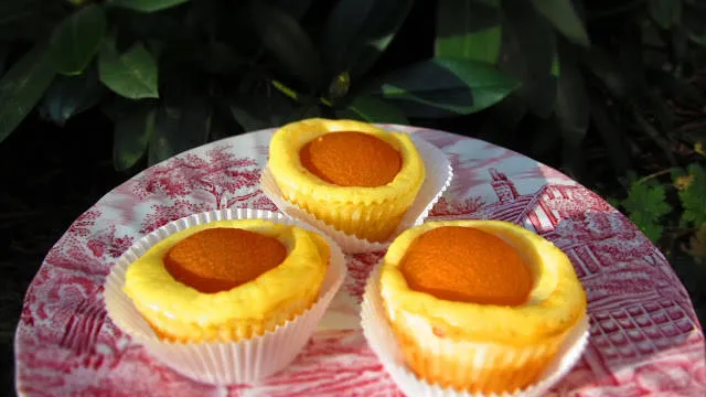 Тези мъфини са с многолистно, готово тесто. Като допълнение използвах компот от кайсии. Сладкишът е ненатрапчиво сладък и много ефектен. По идея от немския Кезекухен