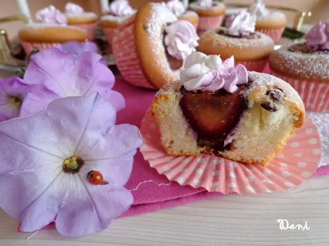 - 6 бр сини сливи /разполовени напречно, за да се получат 12 половинки/