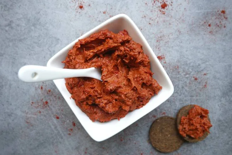 Мързелива лютеница със сушени чушки и домати