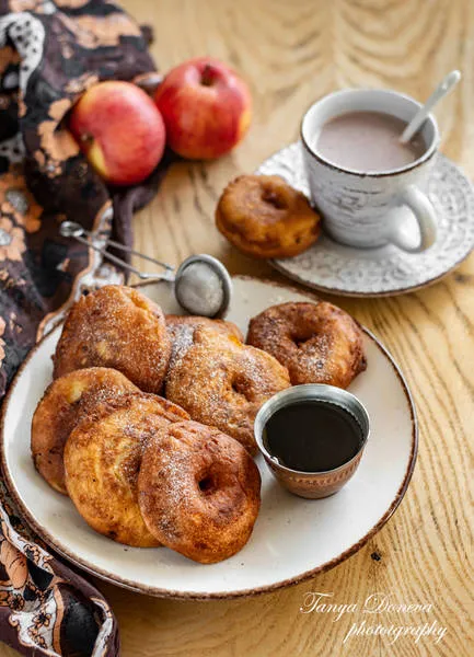 Готовите ябълкови понички сервирайте поръсени с пудра захар, горещи или студени и в двата случая са страхотни!