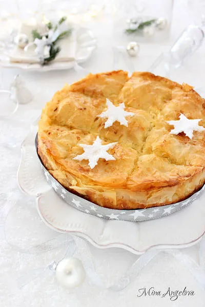 Ако приготвяме баницата за Коледната или Новогодишната трапеза - можем да я украсим с предварително изрязани от краищата на корите снежинки или звездички, които да намажем с масло и леко да запечем за 4-5 минути във фурната и веднага след това да поръсим обилно с пудра захар.