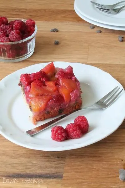 Обърнат сладкиш с манго, малини и шоколадов чипс