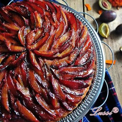 Обърнат сладкиш със сини сливи