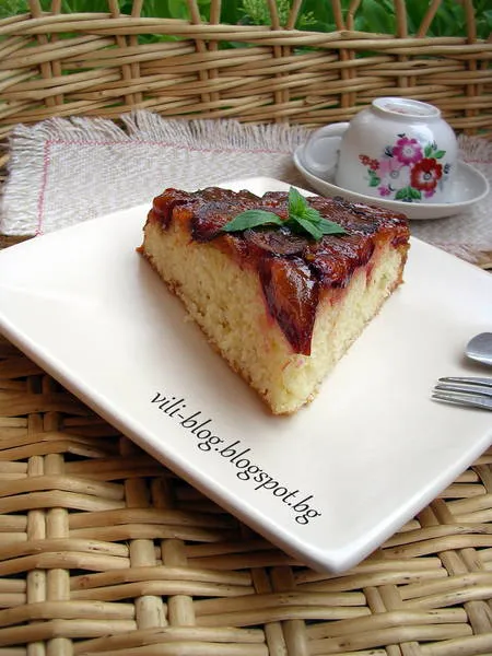 Обърнат сладкиш със сини сливи и карамел