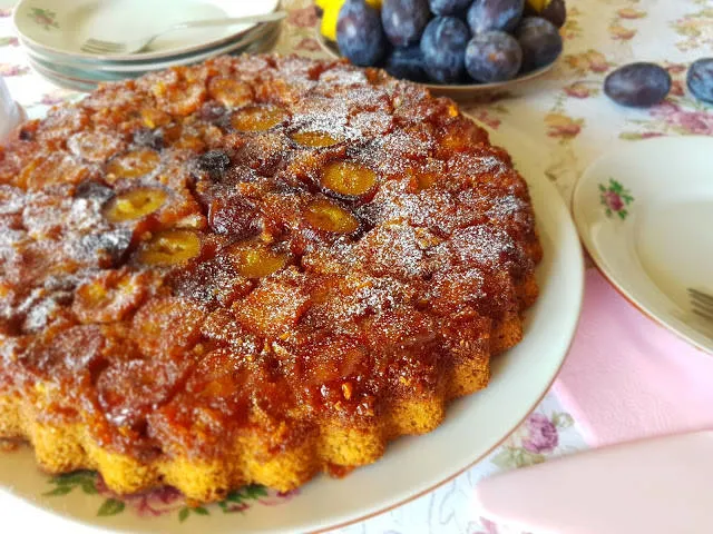 Обърнат тарт с шам фъстък и плодове