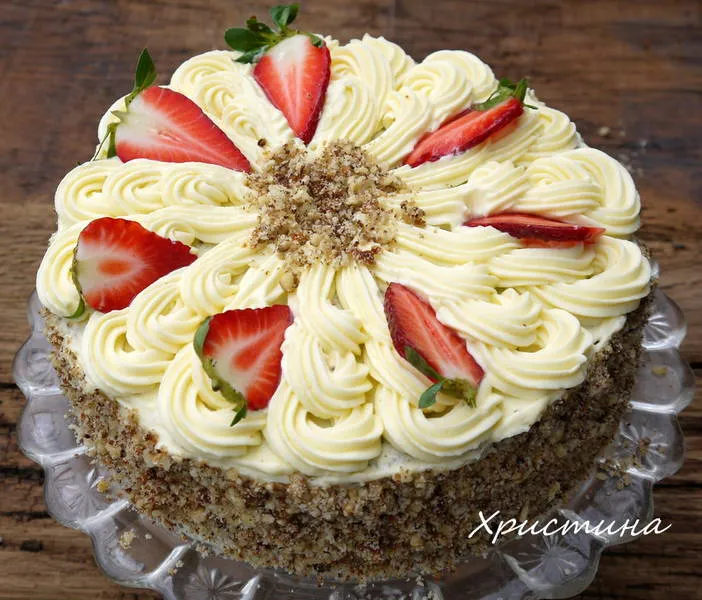 Орехова торта с ягоди