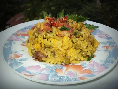 Ориз с месо, зеленчуци и чили в бяло вино