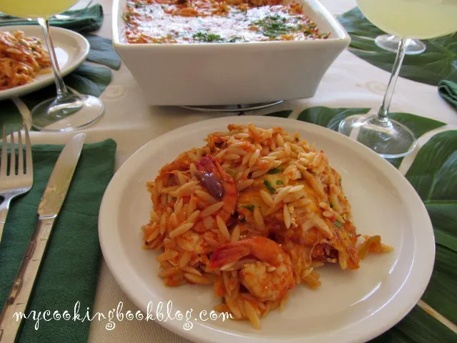 Нещо като т.нар. Скариди Саганаки, смесени с орзо и превърнати в апетитна запеканка. Божествено вкусно е! Комбинацията е популярна по Средиземноморието
