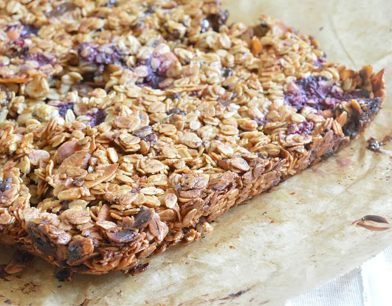 Овесени блокчета с шоколад и малини