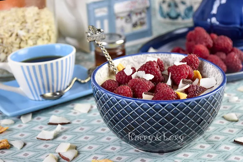 Овесени ядки с малини и кокос