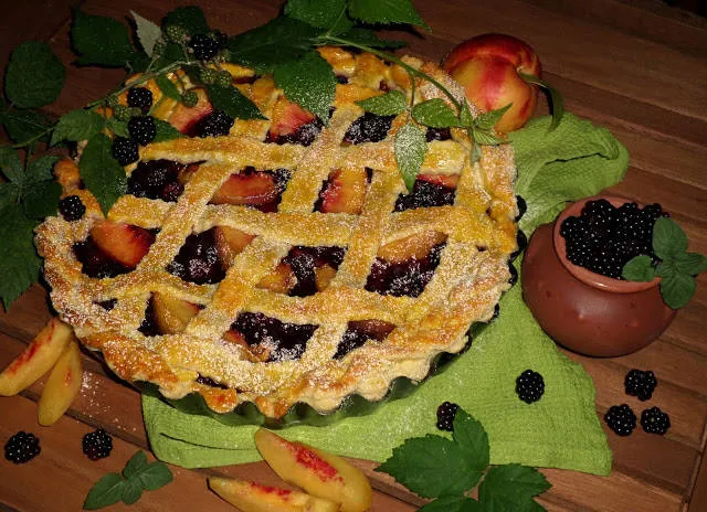Ароматен сладкиши с плодове на лятото - къпини и нектарини