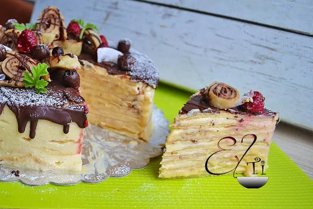 Днес ще предложа една лека торта от палачинки, с млечен крем, аромат на ванилия и загатната нотка карамел.