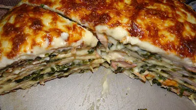 Палачинкова торта със спанак и шунка