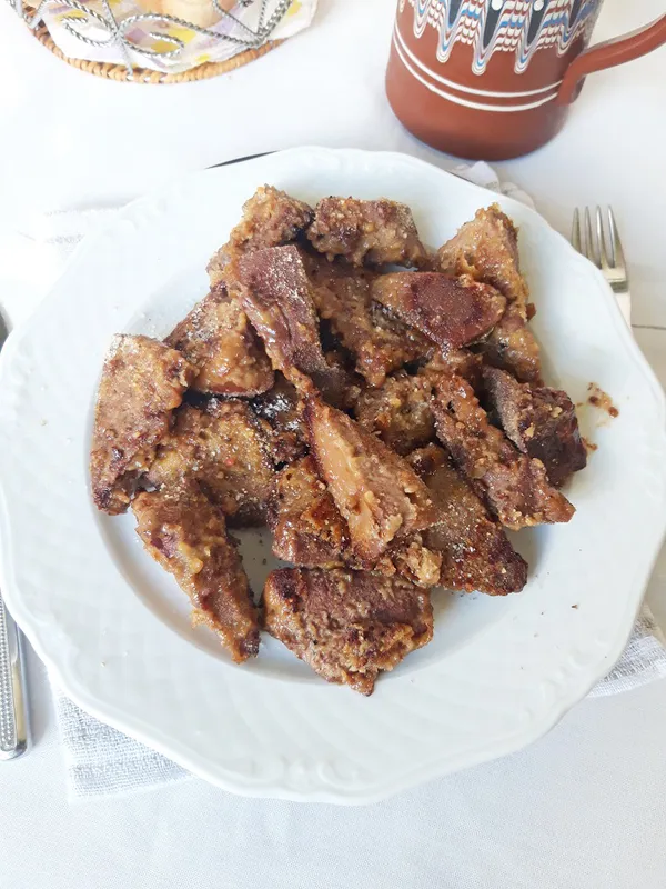 Тънкостта е да се улучи точното време на печене, спрямо дебелината на парчетата дроб. Не се изкисва, не се маринова.