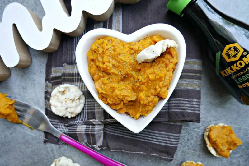 Днешната идея е за дип от сладки картофи, който овкусих със зелената версия на соевия сос Kikkoman. Много добре се съчетава с оризовки