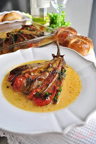Патладжан на фурна с моцарела,сирене и пресен босилек