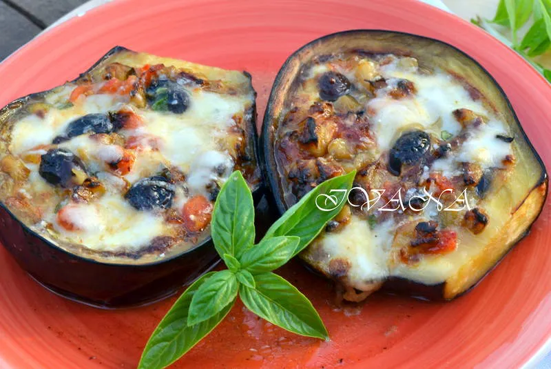 Пълнен патладжан с маслини, моцарела и пармезан!