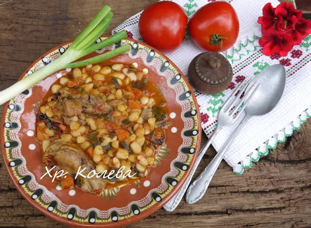 Печен боб със свински джолани