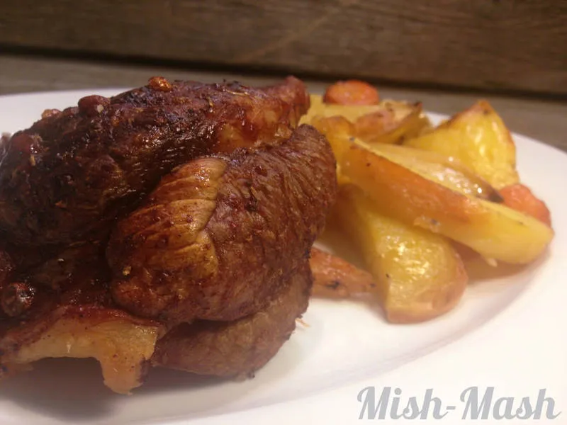 Шпикован свински джолан със зеленчуци