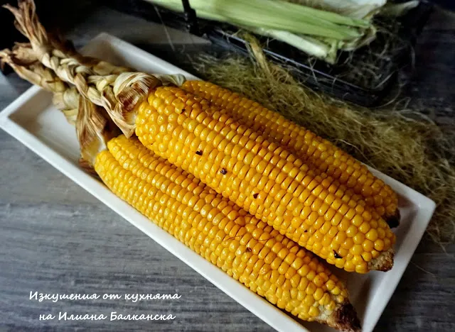 Така оформена, царевицата може да се изпече на барбекю, като се обръща от време на време.