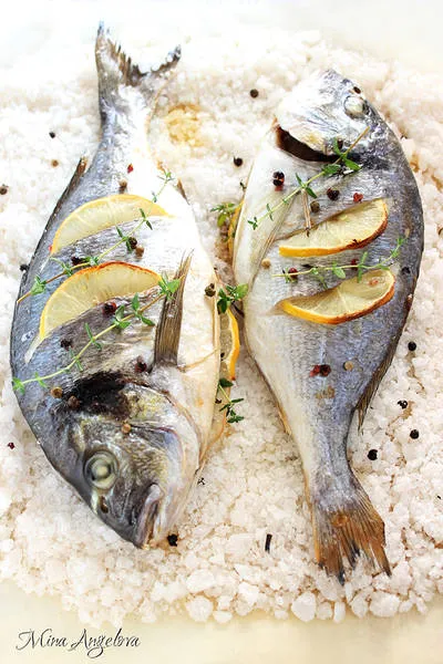 Печена ципура върху морска сол