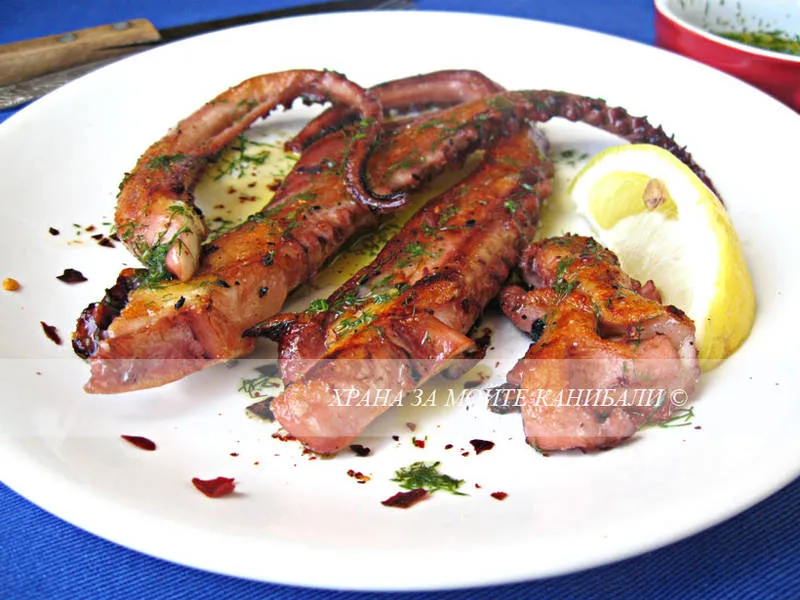 Пикантни запечени на плоча пипала от калмари