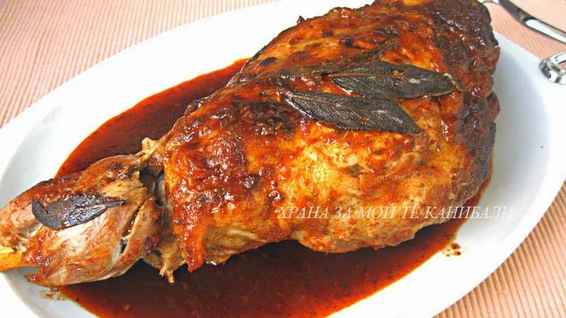 Печено агнешко бутче с подправки