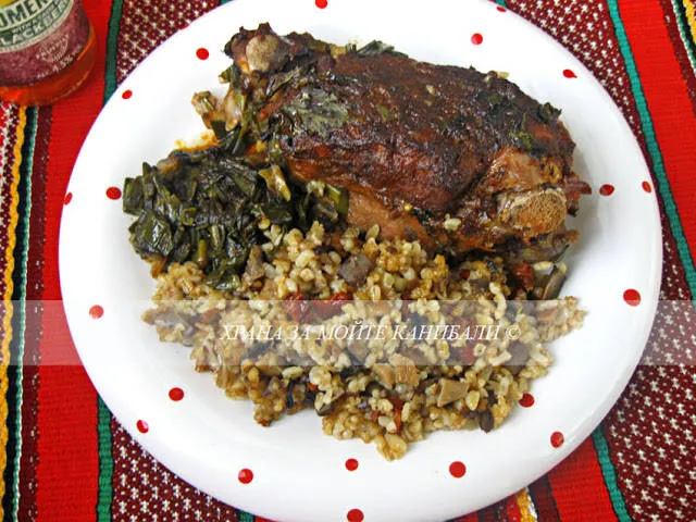 Класическо агнешко печено с класическа гарнитура от булгур и агнешки дреболии