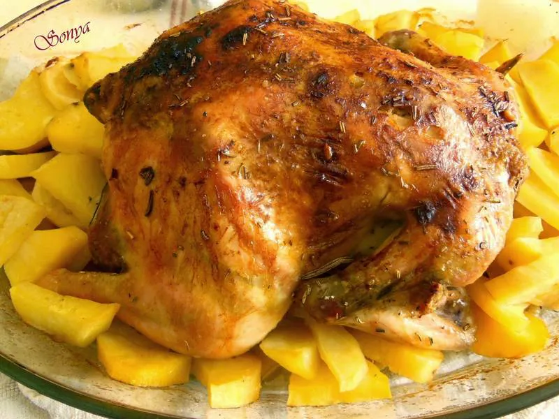 Печено пиле, пълнено с ориз стъпка по стъпка