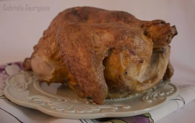 Пилешки бутчета със спанак, броколи и картофи на фурна