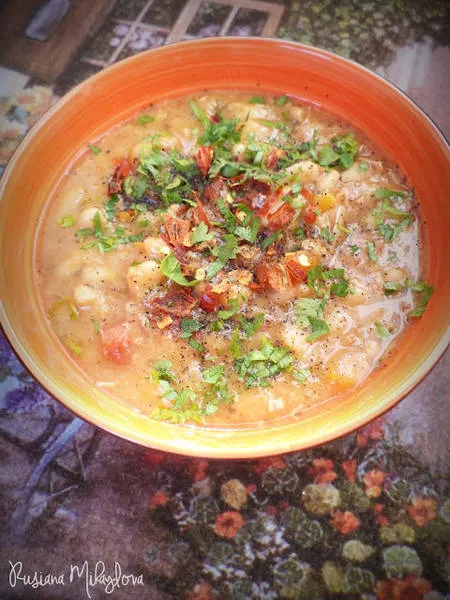 При сервиране се поднася с пресни подправки по избор и допълнително чили