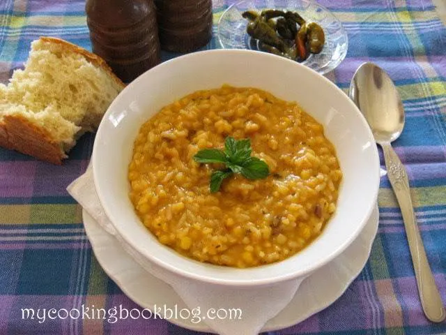 Рецептата за Пикантна Турска супа (Ezogelin Corbasi) с жълта леща и ориз идва от Южна Турция, но е обичана и се сервира в цяла Турция. Името и „Ezogelin Corbasi“ е взела от млада невеста (gelin) на име Езо – на български би звучало като „Супата на невестата Езо“