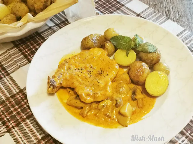 Вратни пържоли с лук и гъби