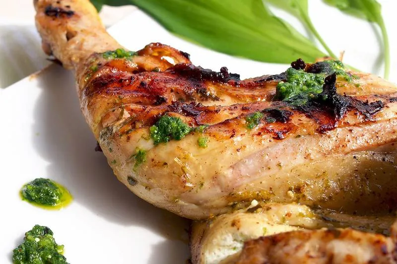 Пиле на скара с песто от левурда и босилек