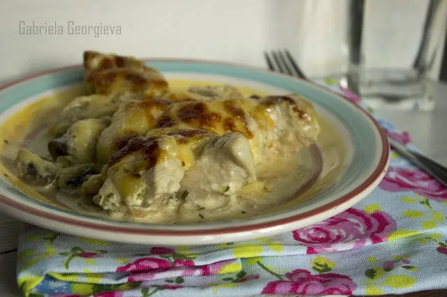 Пиле с гъби и сметана