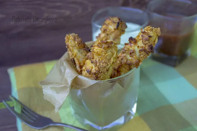 Пилешки хапки с корнфлейкс и млечно-майонезен сос