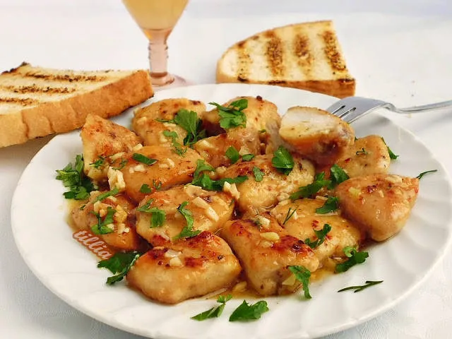Пилешки хапки с чеснов сос