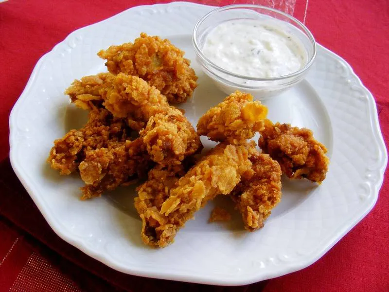 Пилешки хапки с корнфлейкс и млечно-майонезен сос