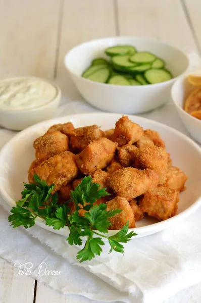 Пилешки хапки с корнфлейкс и млечно-майонезен сос