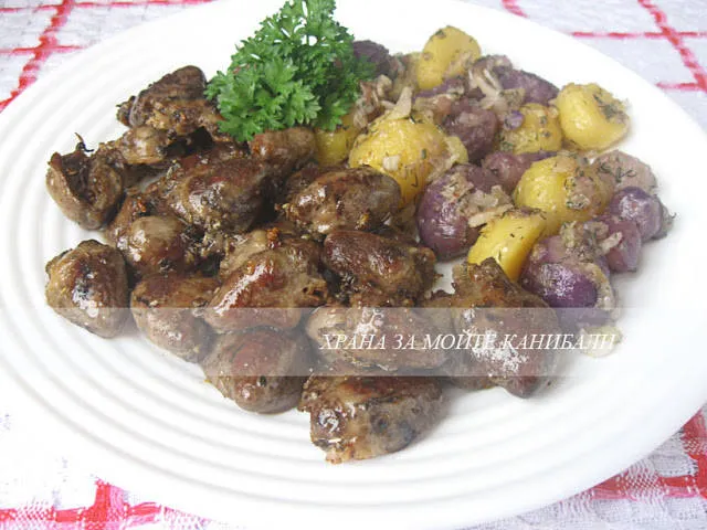 Пилешки сърца в масло