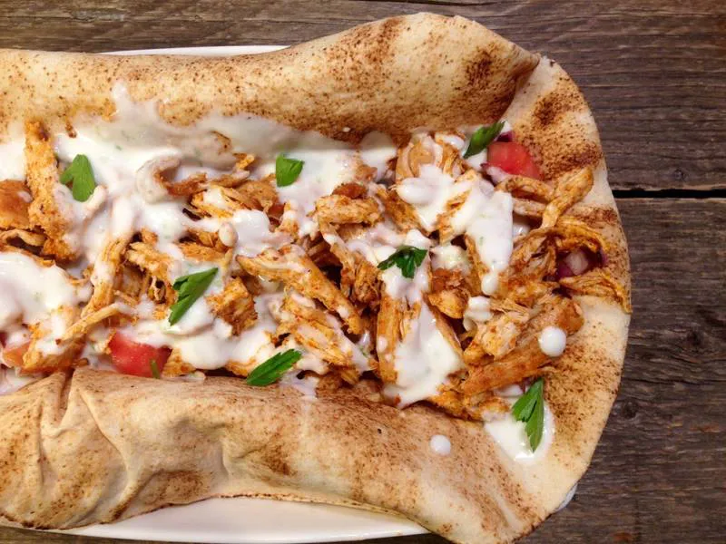 Ароматно пилешко месо на конци, млечен сос с нотки на лайм и свежа доматена салца - всичко това е пилешкият такос. Опитайте го!