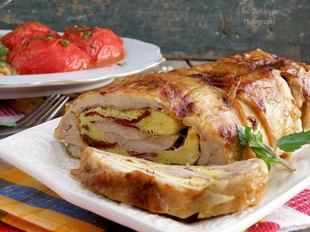 Пилешко руло с омлет с пастърма